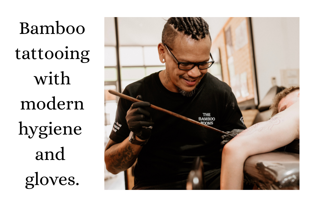 如果您上网查一查“竹签纹身”,会看到许多不卫生的竹签纹身做法的照片。艺术家 (不好使用这种词)不戴手套或手套的手指被剪掉!不但一个人在拉伸皮肤,而且另外一个人在打纹身。如果您看到这种情况,请逃跑并快速逃跑。这样的做法不是必要的。真正的艺术家应该无其他人帮助自己在皮肤上纹身,并且毫无例外地总是戴着手套。除此之外,手套切勿重复使用。要是您有任何事离开工作单位,无论如何应该使用新手套。我可以保证,在竹子坊®我们一直检查何止千百手套,所有手套都用手指按照应有的方式正确地处理扔掉到医疗废物桶。